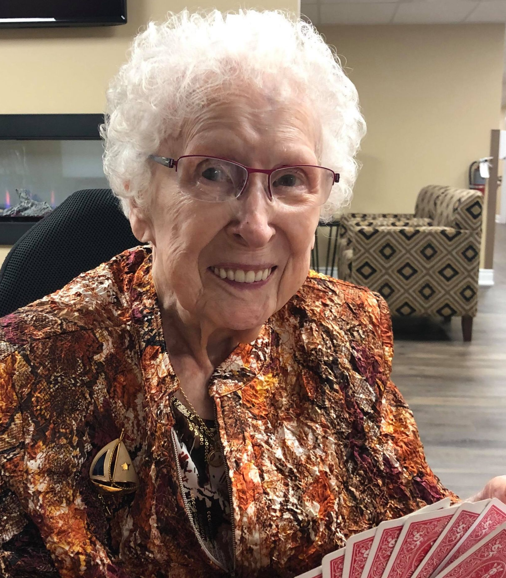 I will always treasure Mom’s wisdom, her strength, her compassion, her joie de vivre and adventurous spirit, her love of music, dancing and games, and most certainly her acumen at cards. I know she will be the life of the party where she has arrived.